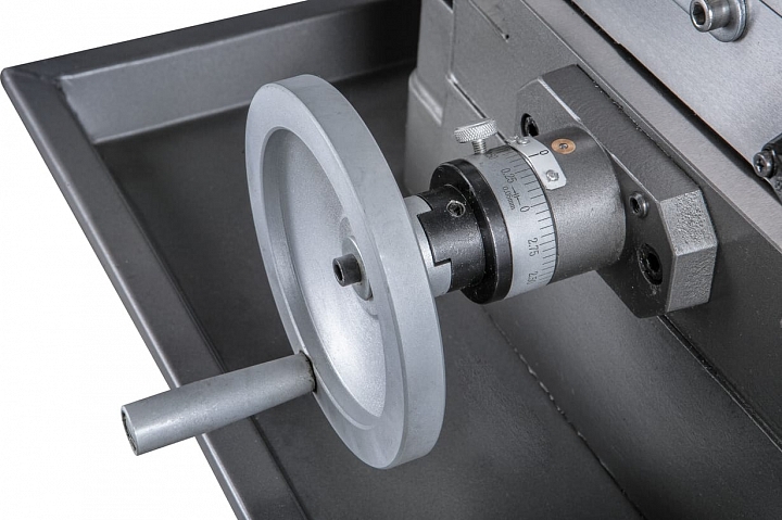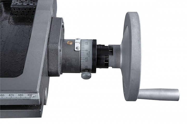 Модель JMD-50LPFD оснащена рабочим столом размером 1000 x 240мм, который перемещается по направляющим типа ласточкин хвост и имеет возможность перемещения по осям X, Y на величину 760мм и 190 мм соответственно. На столе имеется три Т-образных паза шириной 14 мм для закрепления деталей прихватами или установки тисков и других приспособлений. Опционально станок может быть дооснащен устройством автоматической подачи, которое устанавливается с левой стороны рабочего стола и позволяет осуществлять подачу по продольной оси в автоматическом режиме, улучшая качество получаемой поверхности и увеличивая производительность изготовления деталей. Также устройство имеет функцию ускоренного перемещения рабочего стола для сокращения времени подвода инструмента к детали и его отведения, для удобной установки/снятия обрабатываемой детали.