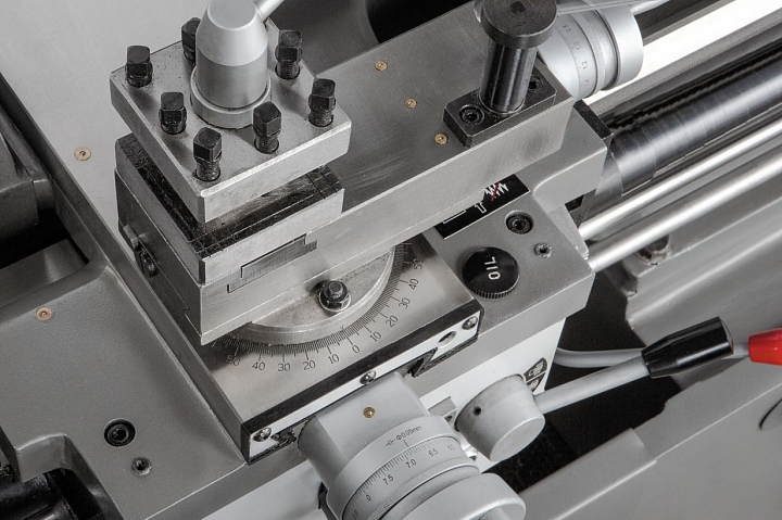Многофункциональный токарно-винторезный станок JET GH-1440K на чугунном основании рассчитан на эксплуатацию промышленными предприятиями и крупными мастерскими, - там, где требуется особое качество и скорость обработки. Мощный асинхронный двигатель на 2,25 кВт способен обеспечивать работоспособность станка на протяжении всего рабочего дня. Станок полностью соответствует по ГОСТ 18097 классу точности «Н» - биение шпинделя не превышает 0,010 мм. На станке можно обтачивать детали диаметром до 360 мм над станиной, до 520 мм со снятым мостиком gap (длинна мостика 237 мм) и до 210 мм над суппортом.