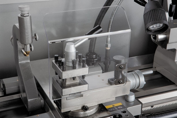 Фартук суппорта работает в масляной ванне, задняя бабка регулируется в поперечном направлении, что дает возможность обточки конических заготовок. Станок поставляется в максимальной комплектации. В нее входят система подача СОЖ, люнеты, планшайба, дополнительный 4-х кулачковый патрон, переходная втулка, вращающийся и не вращающийся центры, опоры для выставки станка, набор инструмента и лампа освещения рабочей зоны.