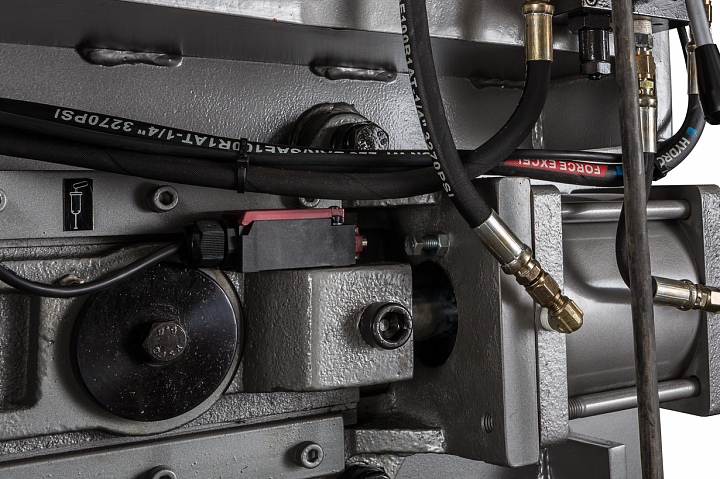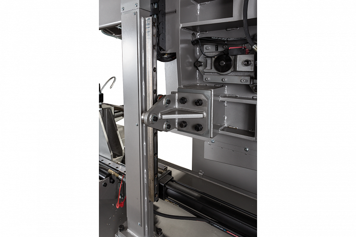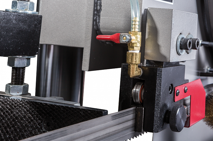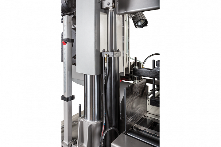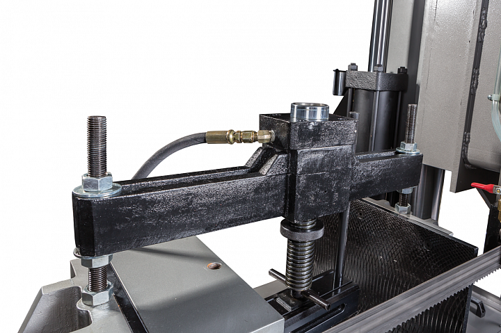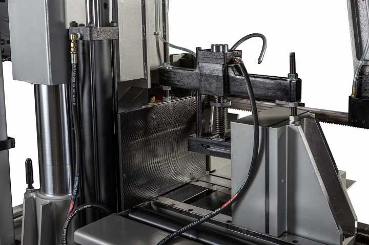 Представляем вашему вниманию полуавтоматический ленточнопильный станок HBS-2028DAS производства компании JET. Он предназначен для распила крупных деталей из стали, цветных металлов и различных сплавов. Станок найдет применение на предприятиях, нуждающихся в пилении крупноразмерных заготовок и выпускающих продукцию в промышленных объемах. Безусловное преимущество этого станка – возможность увеличения скорости работы за счет резки сразу нескольких заготовок. Для этого HBS-2028DAS оборудован гидравлическим прижимом, максимальные габариты пакета - 200-400 x 75-275 мм. Зона обработки у данной модели будет оптимальна для большинства заказчиков, она составляет Ø510 мм, □510 мм □720 х 510 мм (при пилении под углом 90º), размеры ленточного полотна 41х1,3 х 5840 мм (М42). В зависимости от материала, скорость его движения можно плавно выбирать из диапазона 20-100 м/мин, текущее значение выводится на дисплей. Полотно приводится в движение мощным электродвигателем 5,6 кВт, рассчитанного на подключение к сети 400 В. HBS-2028DAS оборудован гидравлической системой натяжки полотна, датчиком его обрыва и корд-щекоткой для очистки полотна от продуктов обработки. Для надежной фиксации заготовки применяются гидравлические тиски, зона резки оборудована системой подачи СОЖ и локальной подсветкой. Станок поставляется полностью укомплектованным, провести пусконаладочные работы и ввести его в эксплуатацию не займет много времени.
