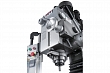 Конструкция станка имеет дополнительно устройство цифровой индикации (УЦИ) по всем трем осям X, Y, Z, позволяющее устанавливать необходимые параметры обработки, осуществлять привязку инструментов и контролировать режимы работы станка с точностью в 5 микрон. Станок оснащен автоматической подачей пиноли шпинделя, имеет 3 скорости - 0,12; 0,18; 0,25 мм/об. Наличие микрометрической подачи, позволяет установить инструмент на необходимую глубину в ручном режиме. Максимальный вылет пиноли шпинделя составляет 120 мм. Для увеличения производительности и удобства обработки крупногабаритных деталей, станок дополнительно оснащен механизированным приводом по оси Z. На пульте управления есть переключатель перемещения фрезерной головы по вертикальной стойке вверх/вниз.